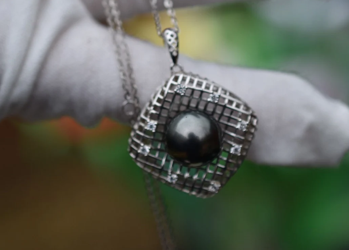 Overall, the Fine natural Tahitian black Pearl & Sterling Silver Pendant Necklace is a piece of wearable art that captures the essence of sophistication and luxury. Whether worn as a statement piece for formal occasions or as an everyday accessory, this necklace is sure to garner admiration and become a cherished heirloom for generations to come. Its timeless design and the allure of the Tahitian black pearl make it a gift that symbolizes elegance, refinement, and everlasting beauty.